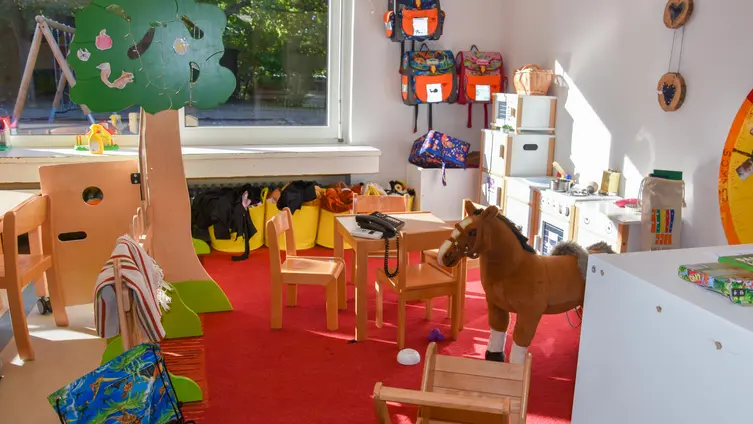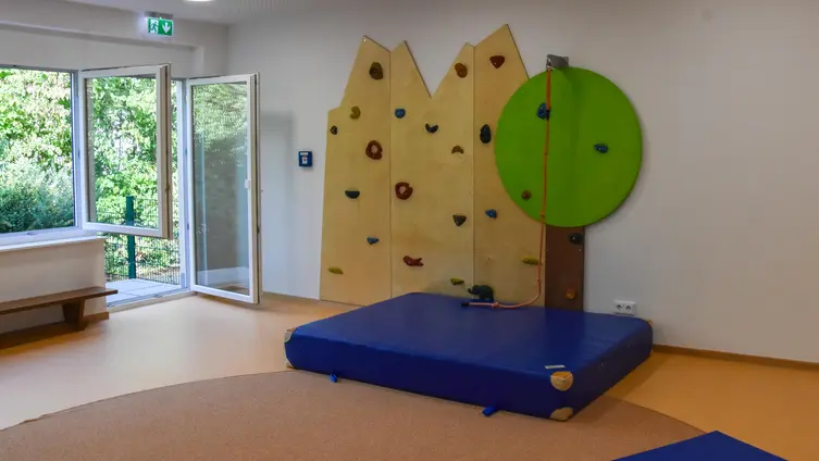 Dank des großzügigen, naturnahen Außengeländes geht es für alle Kinder jeden Tag nach draußen. Zusätzlich gibt es alle 14 Tage freitags einen Waldtag. „Wir möchten den Kindern das Erleben der Natur ermöglichen“, sagt Bartel-Hepp. Darüber hinaus hat die Kita verschiedene Themenräume, in denen die Kinder nach ihren Interessen und Bedürfnissen spielen können: einen Künstlerraum, einen Konstruktionsraum, einen Spieleraum, einen Bewegungsraum, einen Intensivraum und das 3000qm große Außengelände. Die Jüngsten haben ihren eigenen abgeschlossenen Bereich.