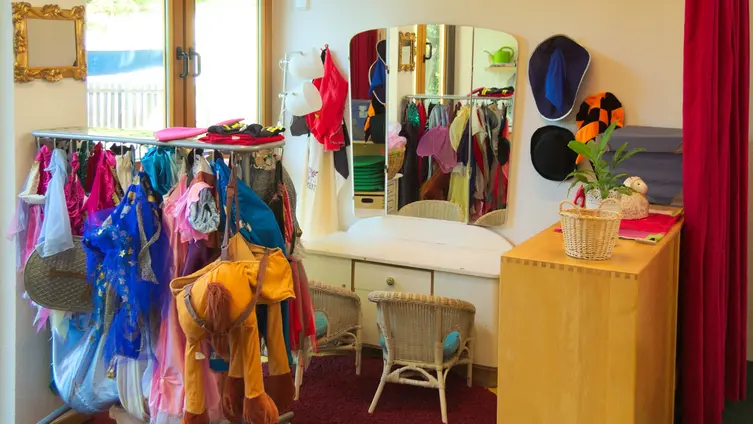 Im Atelier der Evangelischen Integrativen Kindertagesstätte in Massenheim basteln einige Kinder mit Wolle, Papier und bunten Perlen. Im Rollenspielraum laden verschiedene Kostüme zum Verkleiden ein. Draußen, im großen Garten steht ein Rollstuhl zwischen Sandkasten und Schaukel. Er deutet an, was in der Kita in der Mühlstraße ganz normal ist: Kinder mit und ohne Behinderungen und Entwicklungsbeeinträchtigungen spielen und lernen zusammen. Sie erleben ihre Gemeinsamkeiten, ihre Unterschiede, was sie gut können und wo sie noch üben müssen, erleben Wertschätzung und Respekt.